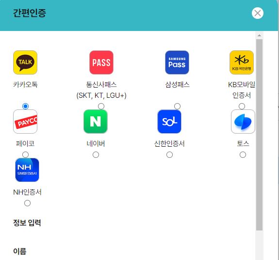 그리고 거주지 검증을 위한 인증서가 필요하다고 하는데 저는 카카오톡을 이용한 인증서가 있어서 핸드폰만 갖고 시작하였습니다.