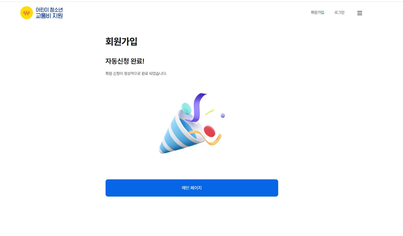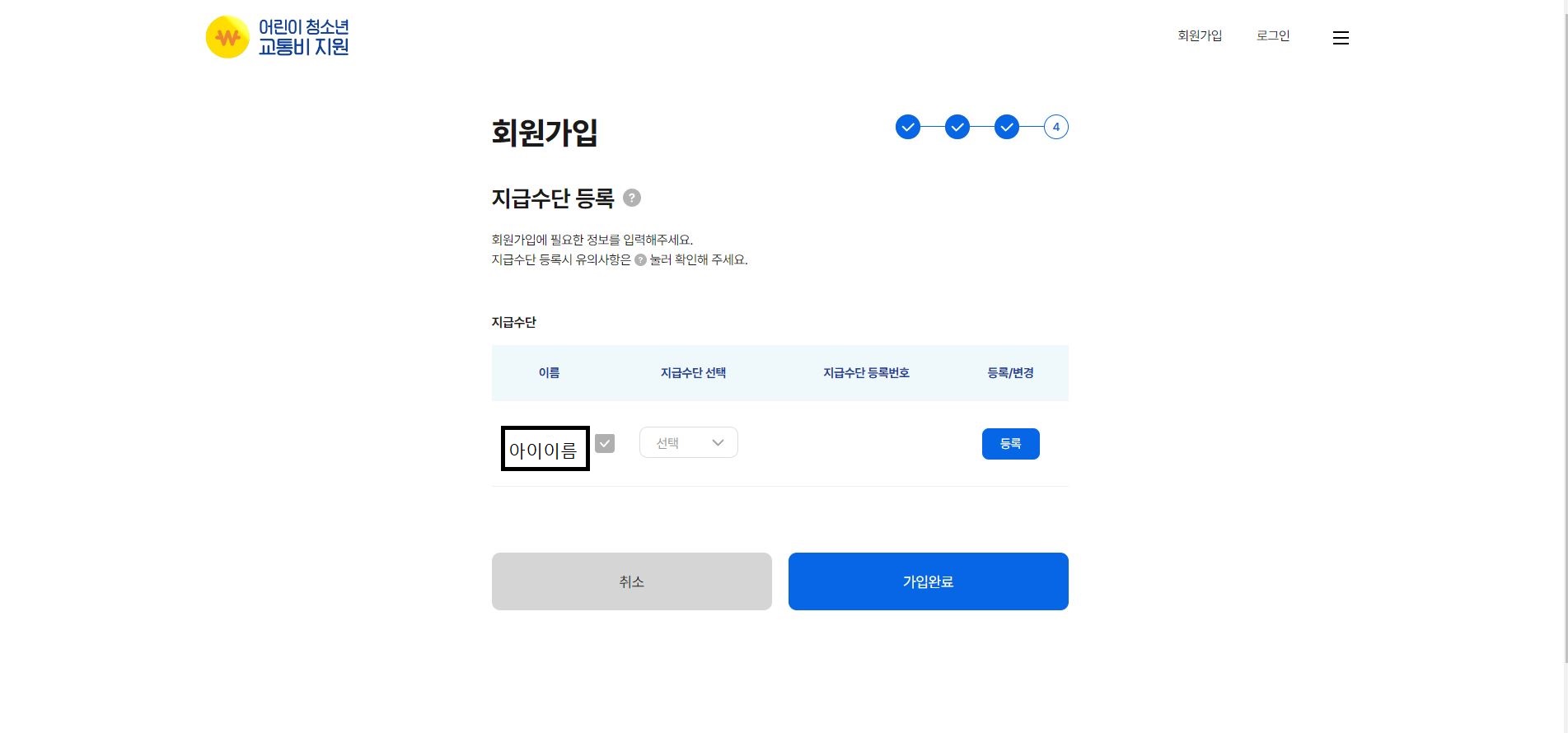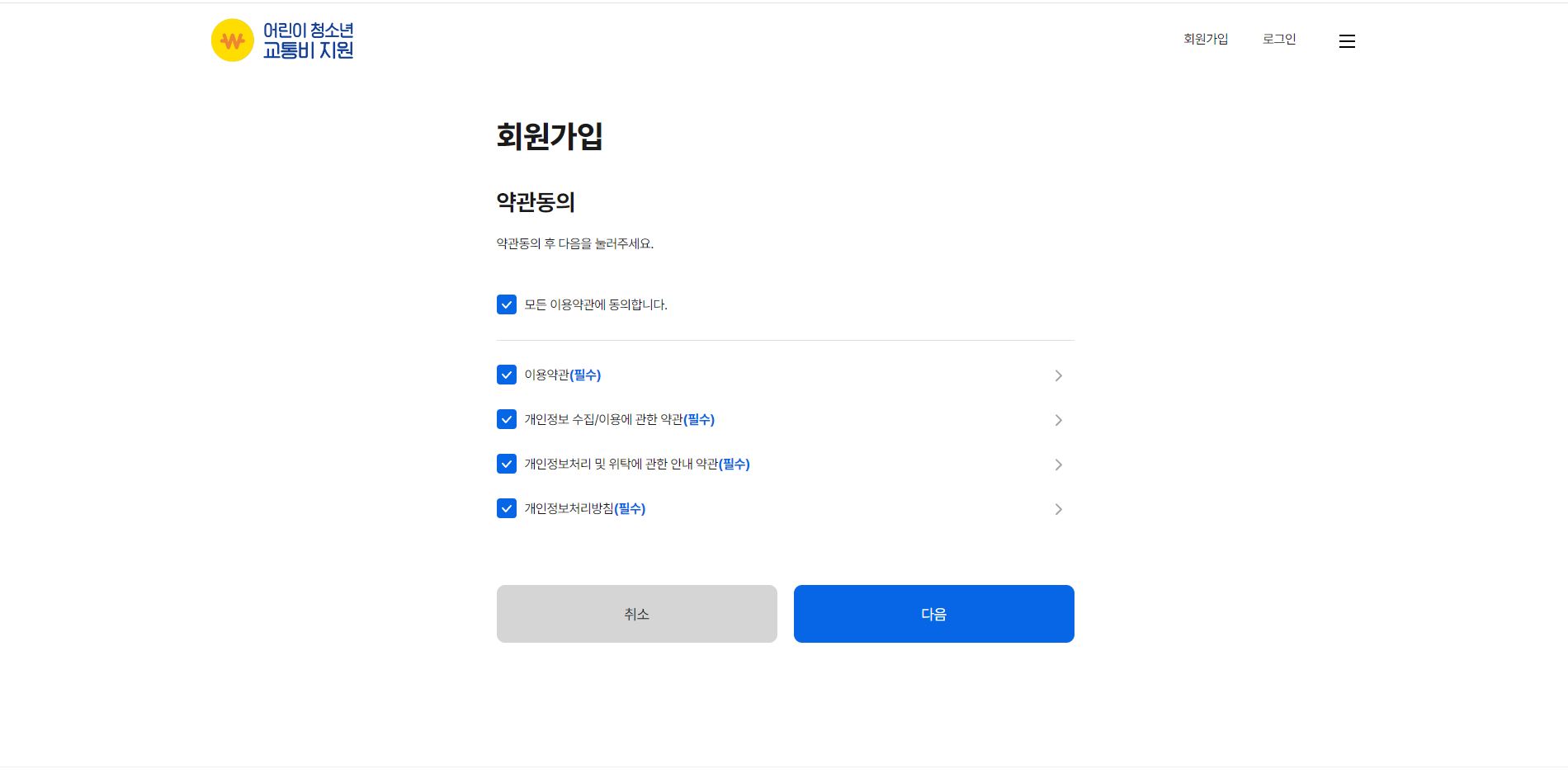 8. 회원정보 입력 후 아이 명의의 교통카드 등록을 시작합니다.