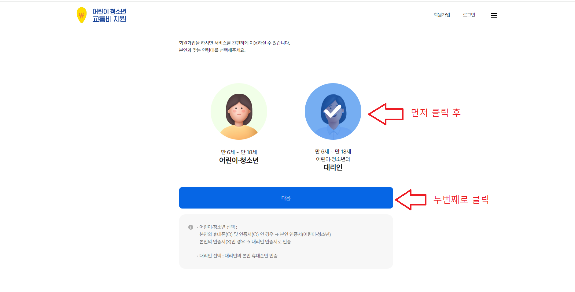 2.  아이는 아직 본인 신분을 증명할 수 없기에 대리인으로 회원가입합니다.