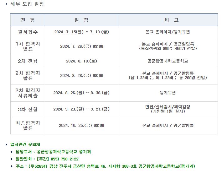 2025년 공군항공과학고등학교 신입생 모집요강
