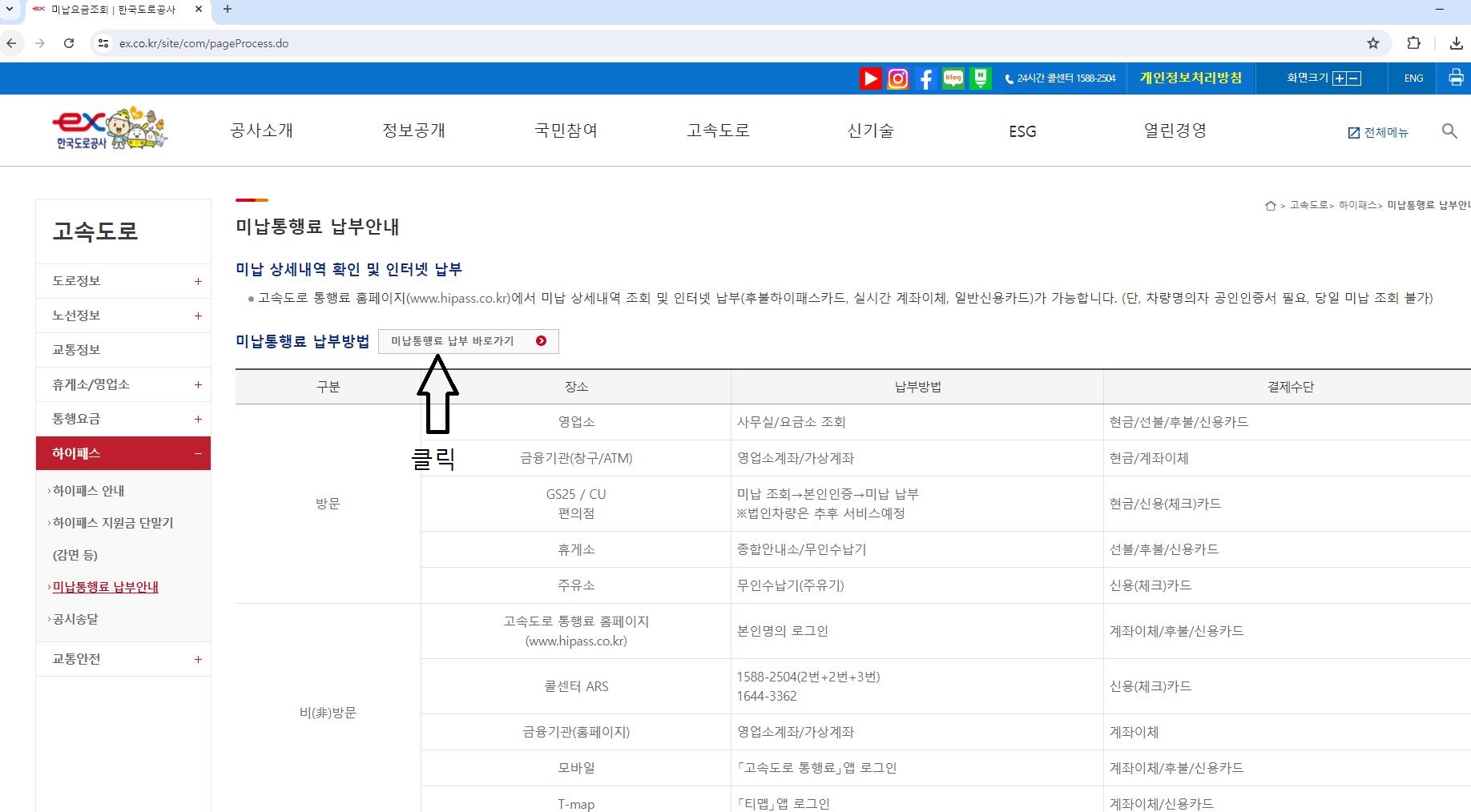 5. 바뀐 화면에서 다시 미납통행료 납부 바로가기 클릭하시면 됩니다.