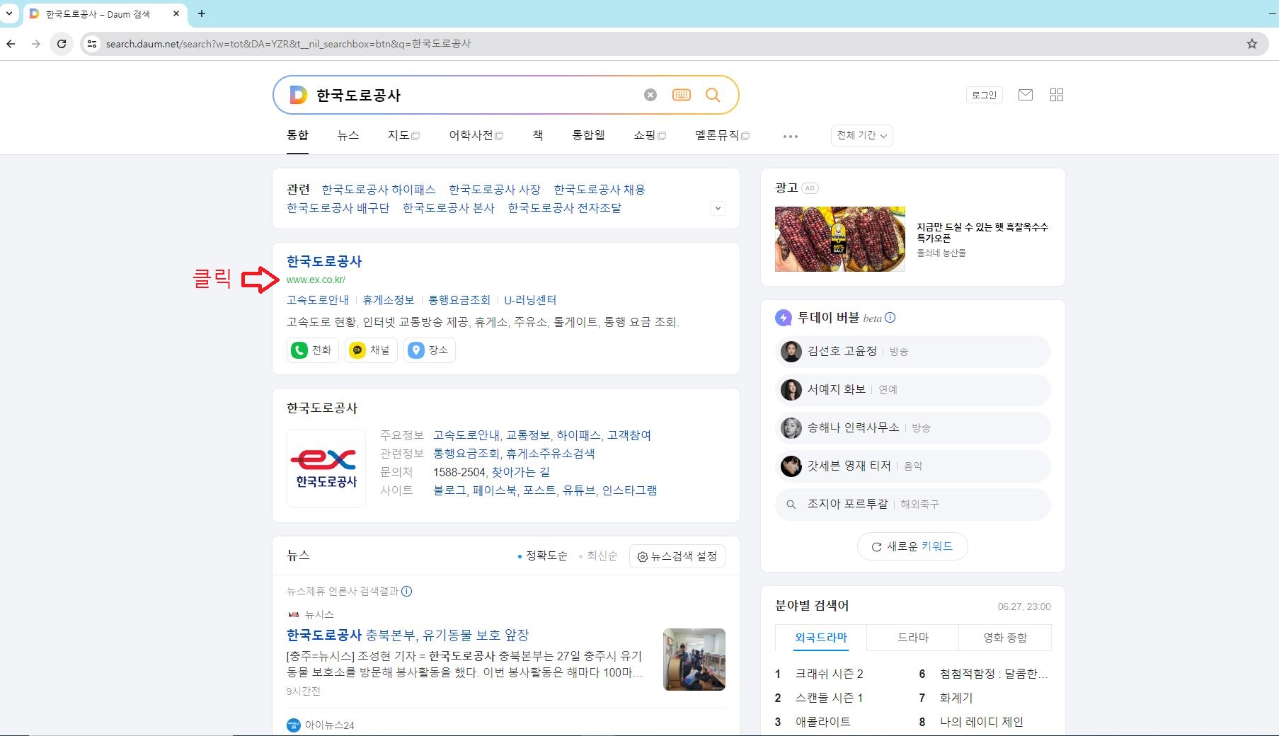 1. 한국도로공사 검색