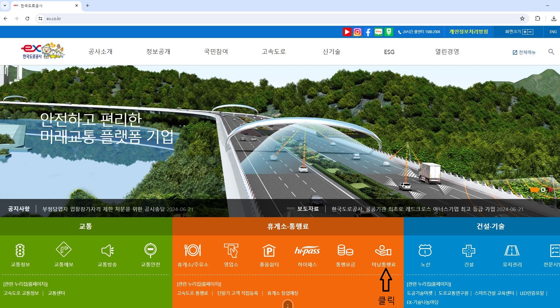 2. 한국도로공사 사이트 클릭